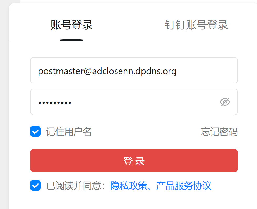 - 点击进入 阿里邮箱登录入口 ,用户名为刚才复制的管理员账号,密码为 #设置前置配置 中第 4 步创建的密码。