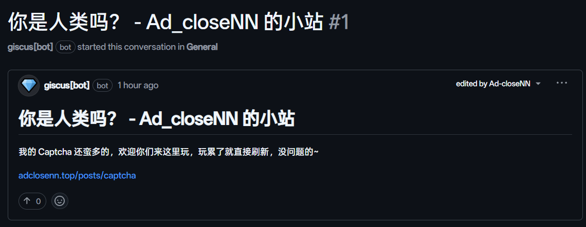 一般来说不会有人无缘无故就对你的文章评论区发布脑残、降智、虚假的评论,因为 Giscus 的评论需要通过 GitHub 授权登录才能发布,所以这算是一个初级发布门槛。